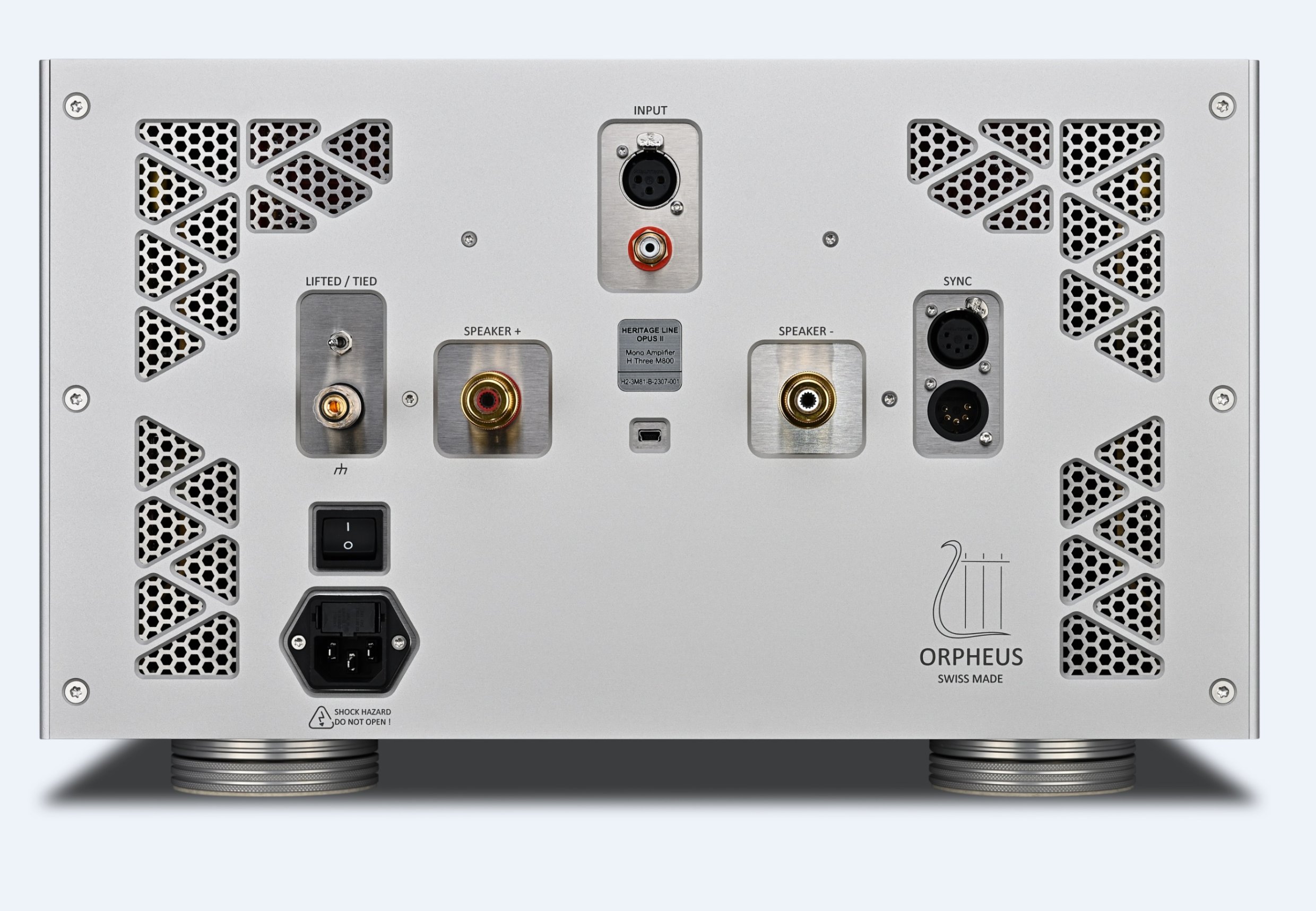 The monoblock H Three M800 amplifier is part of a new opus that redefines what Orpheus has previously achieved. Featuring a current amplification stage driven by twenty-four manually matched power MOSFETs, it can reach instantaneous current peaks of up to forty-five amperes.