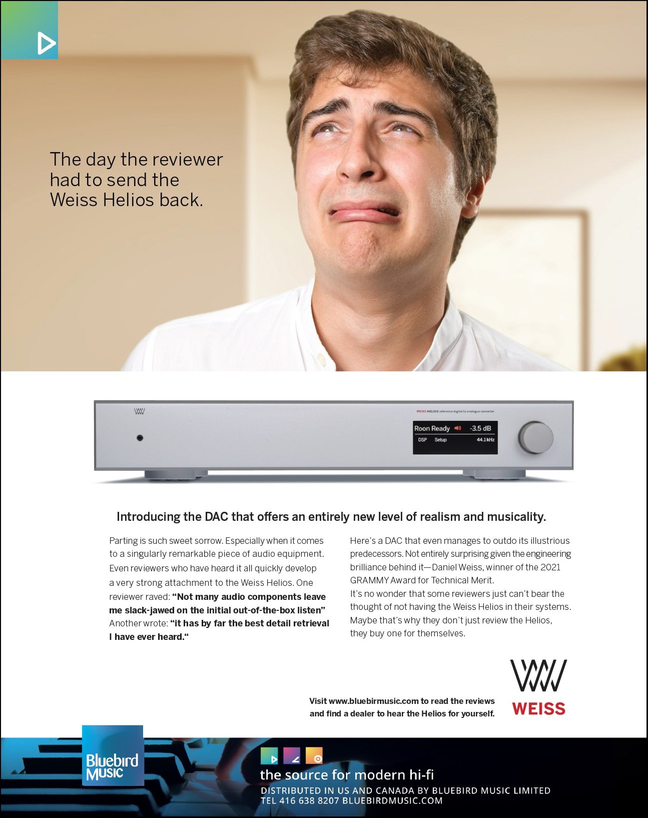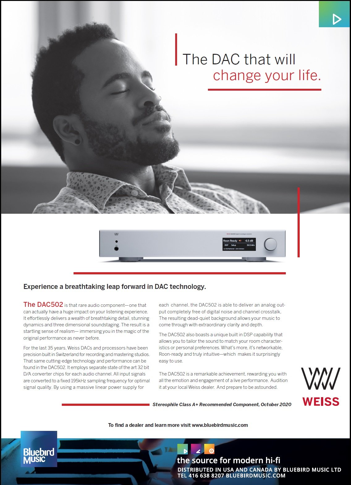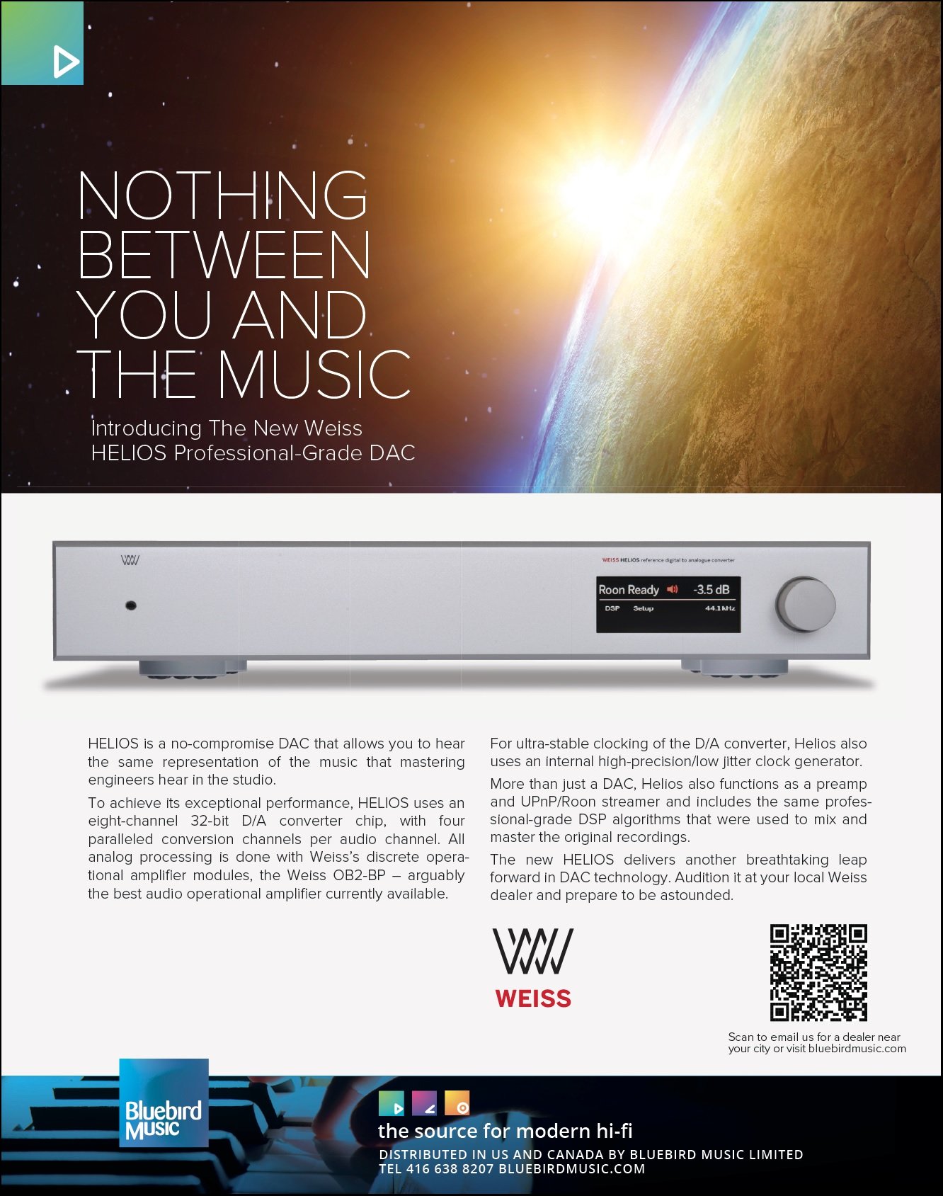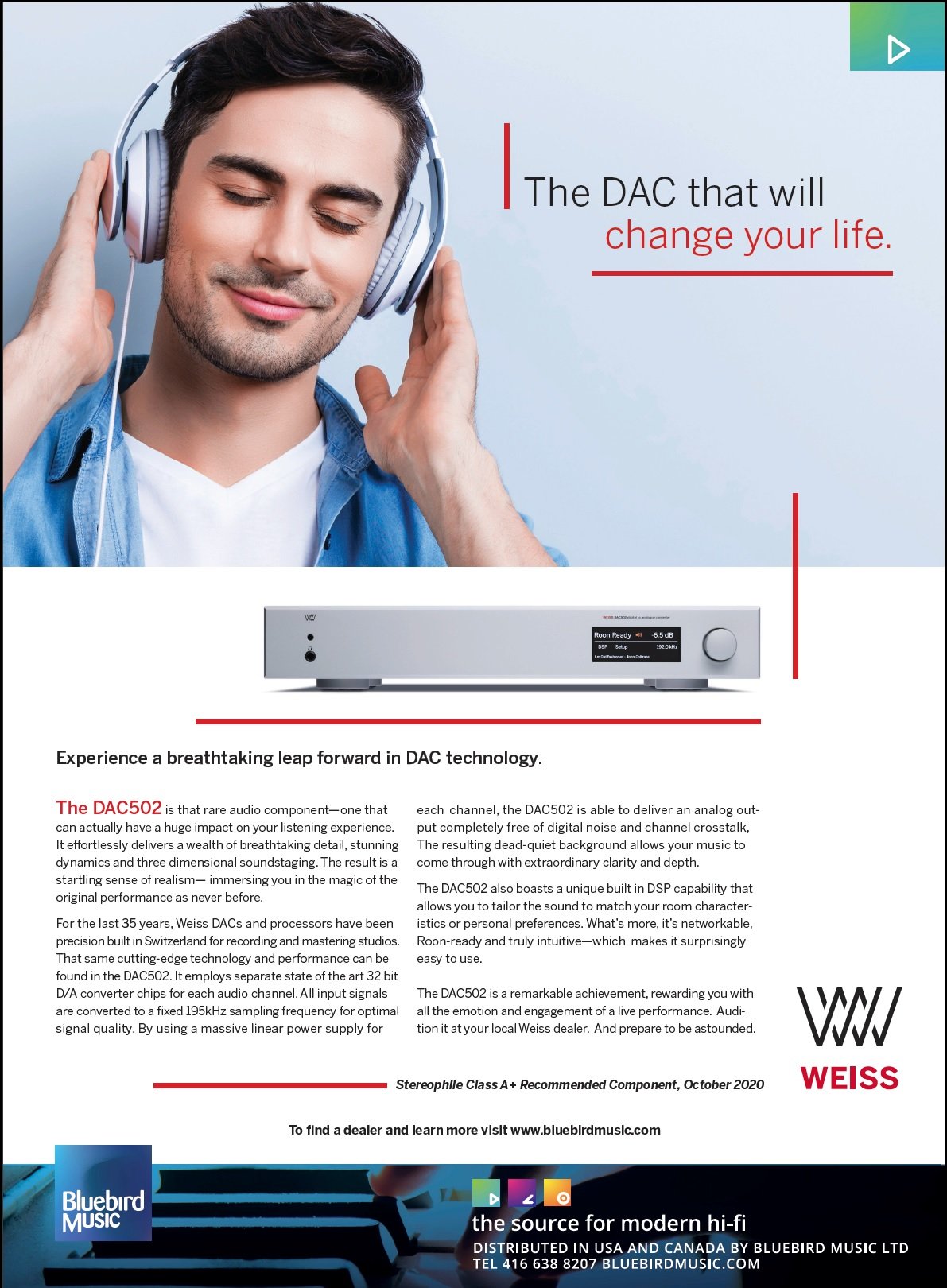 Welcome to Bluebird Music. Bluebird is an importer and distributor of high quality two channel audio products. Our products are available through our network of highly skilled Authorized Dealers throughout USA and Canada. All sales and service is provided through our dealers and we do not sell directly to the public. Please enjoy browsing through our collection of exciting, modern, world-class brands and when you are ready click Find A Dealer and we will be delighted to refer you to one of our experts for assistance. Read more...